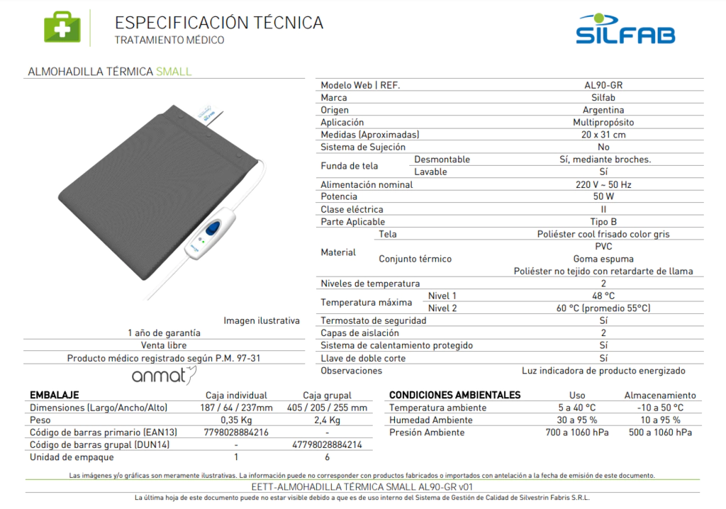 Almohadilla Silfab Electrica Termica Multifuncion Small Al90